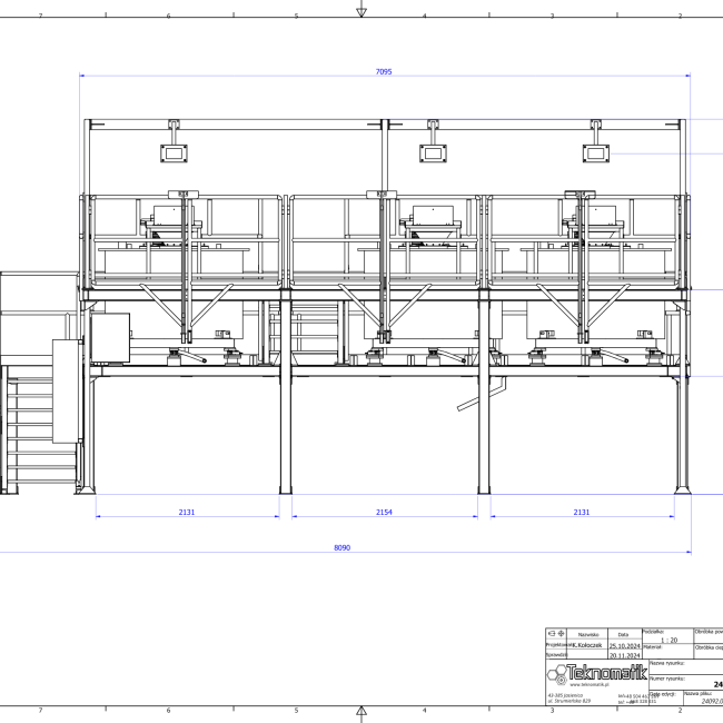 Konstrukce je vyrobena z ocelových profilů s horní plošinou sloužící k obsluze zásobníků a spodní plošinou umožňující volný servisní přístup ke všem částem stroje. Přístupové schody a plošiny jsou navrženy tak, aby operátorům zajistily maximální pohodlí při práci a volnost pohybu.