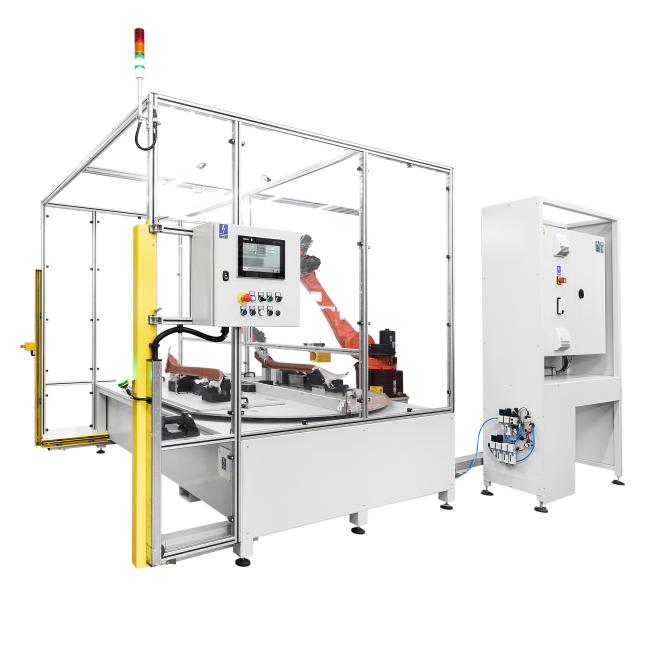 Srdcem stanice je dvoupolohový otočný stůl, který umožňuje nepřetržitý provoz. Zatímco robot KUKA KR 8 R2010-2 provádí řezání na jedné pozici, může operátor bezpečně vyjmout hotový díl a připravit další na druhé pozici.