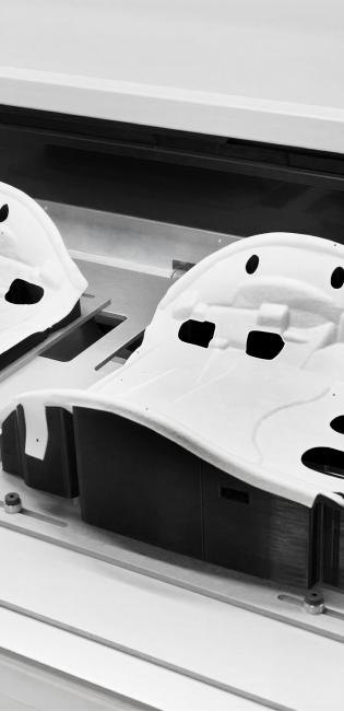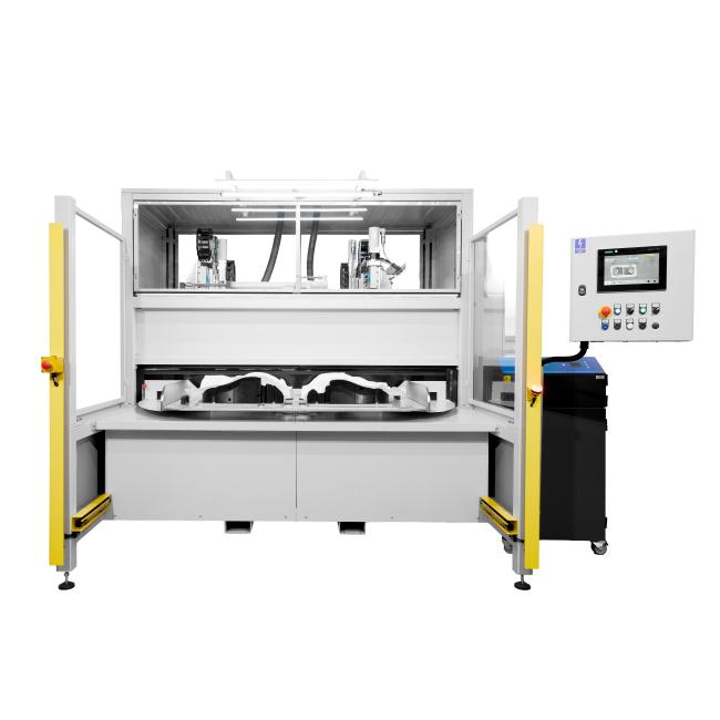 Zařízení slouží k přesnému vyřezávání otvorů do polyesterových fleeců (výztužných prvků pěny v autosedačkách). Stroj představuje alternativu k tradičním lisům, což výrazně zvyšuje flexibilitu výroby.