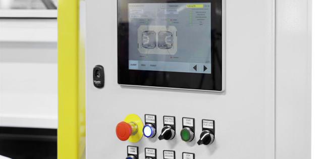 - Konstrukce: Pevný ocelový rám s plně zabezpečenou řezací zónou a monitorovanými servisními dvířky.