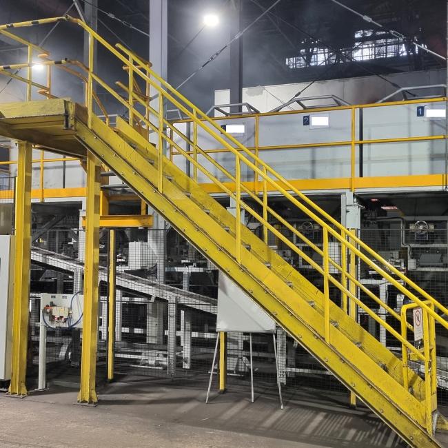 - Přeprava materiálu na zdvihací dopravník, kde přísady čekají na příjezd vysokozdvižného vozíku s pánví.
