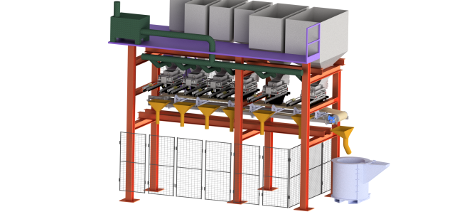 Obsluha nastavuje recepturu přísad – tedy jejich druh a množství – podle aktuálního výrobního programu a zároveň určuje dopravníkovou linku, na kterou má být materiál vysypán. Toto řešení zajišťuje vysokou flexibilitu a umožňuje efektivně přizpůsobit provoz zařízení aktuálním potřebám výroby.
