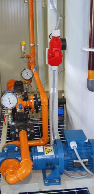 Zařízení slouží k centrálnímu zásobování výrobních strojů, které využívají kapaliny dodávané v paletových kontejnerů IBC.